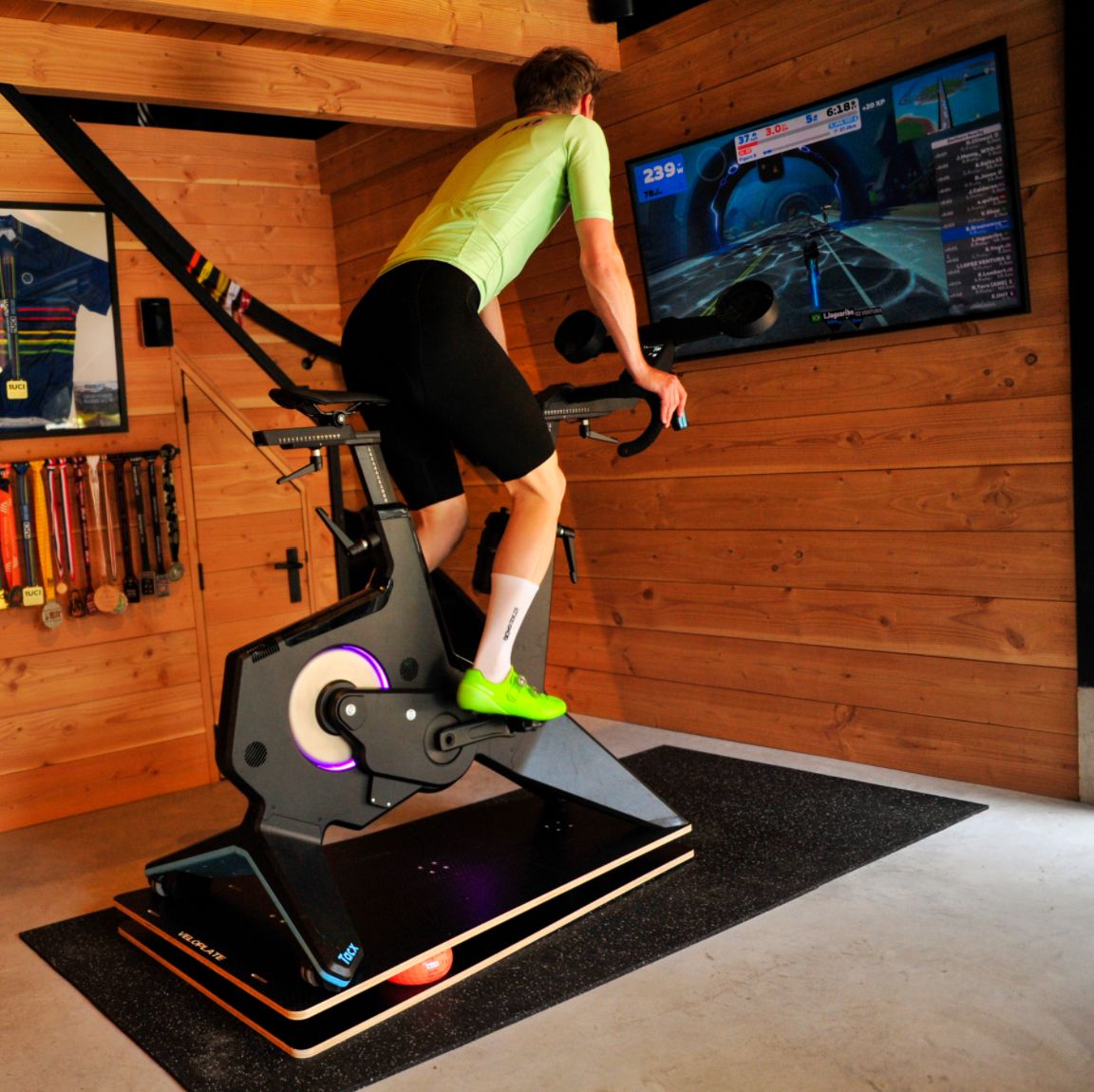 Een platform waarop je de indoortrainer kan zetten en die eenzelfde gevoel geeft als buiten fietsen. Ik kan nu in de winter dezelfde trainingsuren maken als in de zomer op de weg. Mijn persoonlijke doel is om binnen fietsen net zo leuk te maken als buiten op de weg.